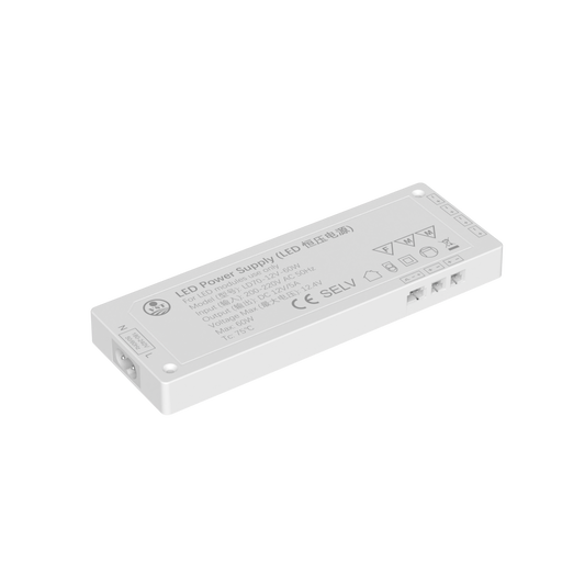 Fuente de alimentación LED de corriente constante LD70 de 12 V, 60 W, transformador de luz de tira ultrafina con ETL para sistemas de iluminación interior, 170 x 60 x 16 mm