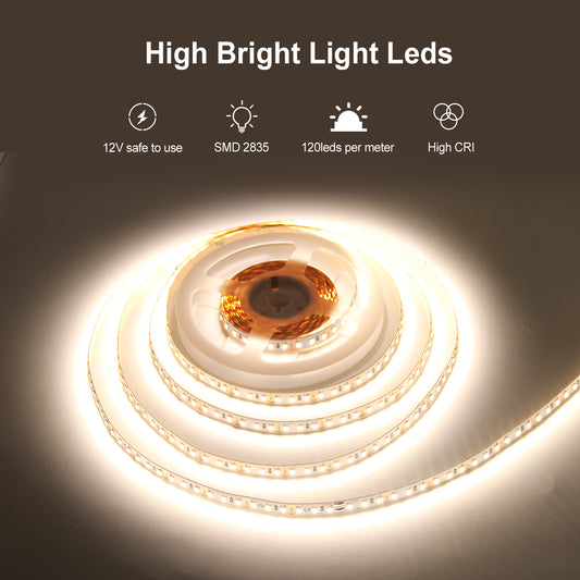 FS31 12V Cinta para debajo del gabinete Iluminación Tira de LED blanca cálida de 10 mm con CE, ETL para decoración de festivales 6500K