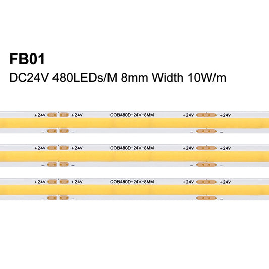 FB01 24V Tira de LED blanca cálida 8mm Cinta de luz LED comercial de alto brillo RoHS, CE para decoración de paredes 3000K/4000K/6500K