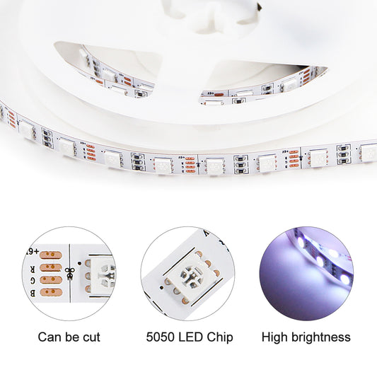 Tira de luces LED RGB BT11+FSA6 de 12 V, resistente al agua IP65, con control inteligente por aplicación y batería externa recargable para decoración del hogar y bares.