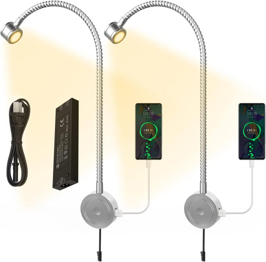 厂家直销LED软管阅读灯 触摸调光USB充电 黑色床头灯 2件套装 含驱动器 ETL认证 护眼台灯